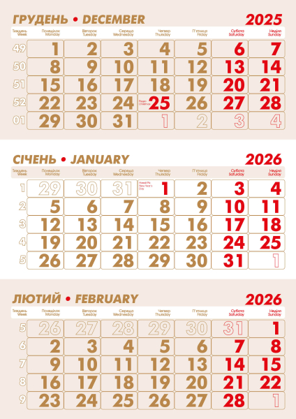 Календарные сетки "Классик" разработаны всеукраинским календарным проектом КАЛЕНДАРЬ .UA для экономии ваших средств - сетка со сравнительно небольшом процентом заливки цветом. Мы предлагаем блоки для квартальных календарей на матовой мелованной бумаге. Только у нас - календарная сетка так дешево! Качественная матовая меловка и высокое качество печати, и никто не отличит ваш календарь от другого в более высокой ценовой категории.