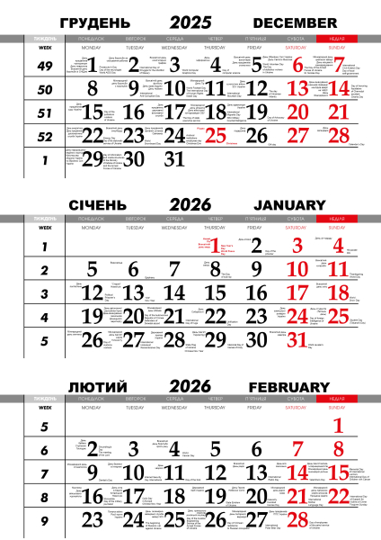 Тільки у нас ви можете купити календарну сітку на 2026 рік так дешево! Застосовуючи колосальний досвід в сфері виробництва календарної продукції, всеукраїнський проект КАЛЕНДАР .UA розробив універсальний метод економії ваших грошей під час кризи. Для тих замовників, кому не підходять календарні блоки для квартальних календарів на офсетному папері, ми пропонуємо на глянцевому крейдованому папері. Економія полягає в порівняно невеликому відсотку заливки кольором. Якісна глянсова меловка + висока якість друку, і ніхто не відрізнить ваш календар від іншого в більш високої цінової категорії.